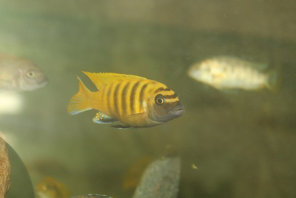 Метриаклима зебра голд руарве достаточно крупная рыба семейства "мбуна " о.Малави.Содержать лучше в больших аквариумах от 350 литров и более . Какой то агрессивности я не заметил ,самки спокойно носят в общаке ,малек через 15 дней после нереста уже плавает .Кормление аналогичное .